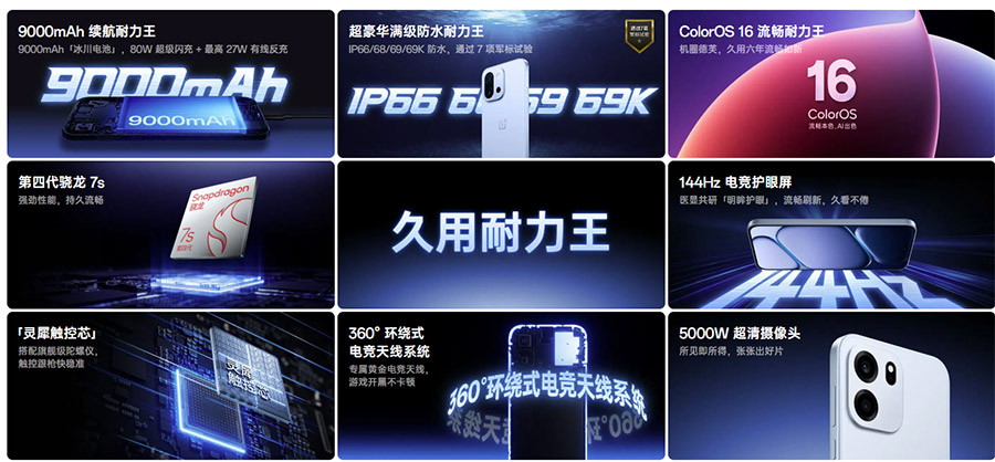 Alongside it, OnePlus also unveiled the Turbo 6V, which places greater emphasis on long-term usage and durability. It shares the same 9000mAh battery capacity, along with 80W fast charging and 27W reverse charging, aimed at covering several days of typical use.