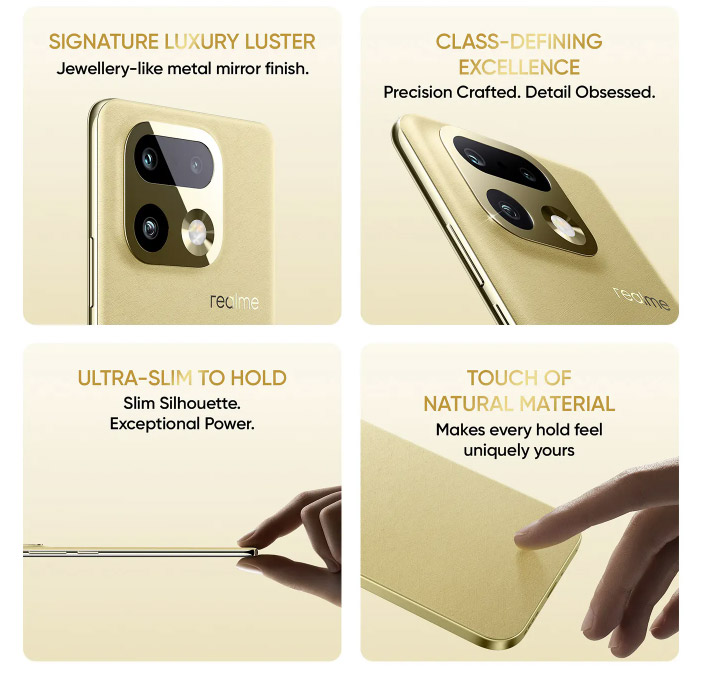 From the colour naming to the choice of collaborator, it is clear that realme has placed strong emphasis on industrial design this time. Beyond the clean and understated camera deco, the phones feature a jewellery-grade glossy finish combined with naturally textured materials on the back cover. Both models are also notably slim and lightweight, with a thickness of around 7.75mm and a weight of approximately 192g.